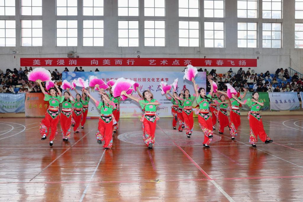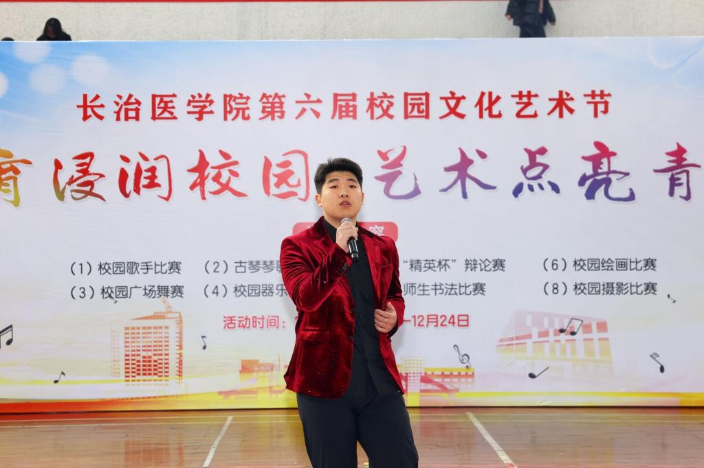 高星宇同学的笛子独奏《扬鞭催马运粮忙》技艺精湛,欢快的旋律让人仿佛置身丰收的喜悦之中。校本部舞蹈队的《打酸枣》充满生活气息,生动演绎了晋东南地区的民俗风情。陈震楠同学深情演唱的《我爱你中国》,以其醇厚的嗓音引发全场情感共鸣。最后,大学生合唱团以《爱的天空》压轴登场,用悠扬的歌声传递医者仁心与青春力量,为活动画上圆满句号。
